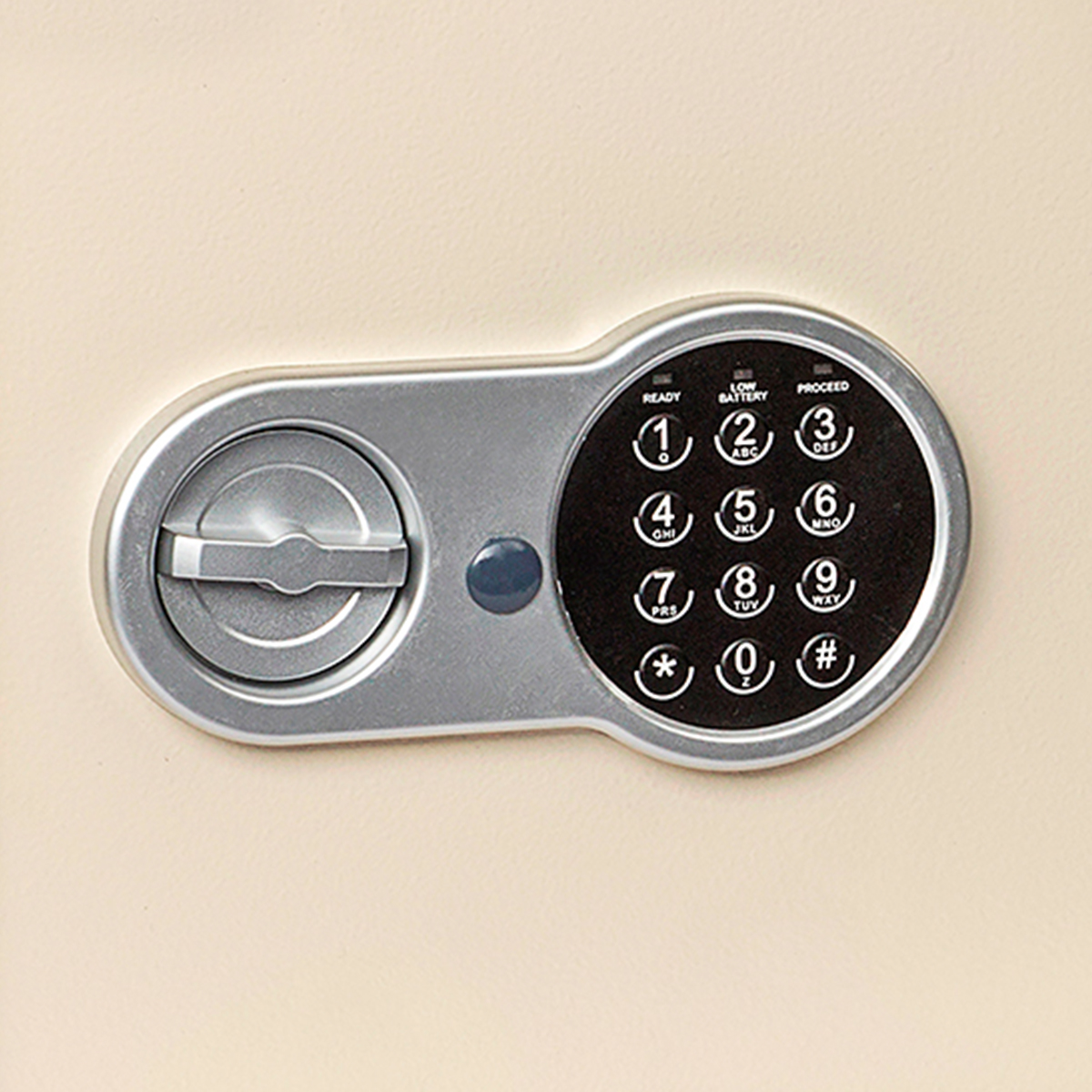 - сейф мебельный обладает приятным бежевым окрасом, что позволяет ему гармонично вписываться в интерьер помещения