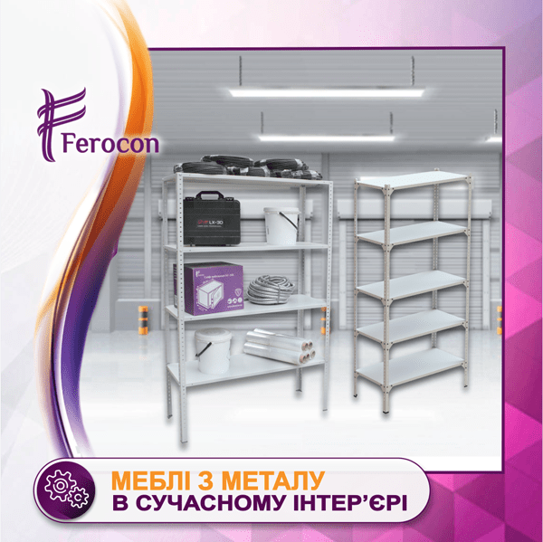 Металевий стелаж за своїм пристроєм практично універсальний, тому що збирається з окремих модулів, тому його можна трансформувати під будь-яке приміщення.